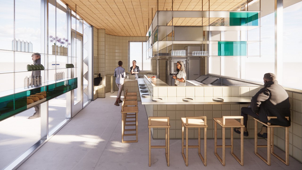 Inspired by the interactions that occur between employees and guests across the coffee bar in their existing space, the food space is anchored by an omakase style bar where guests might interact with the staff as they prepare their food. By allowing guests to “eat in the kitchen,” it blurs the lines between front of house and back of house.