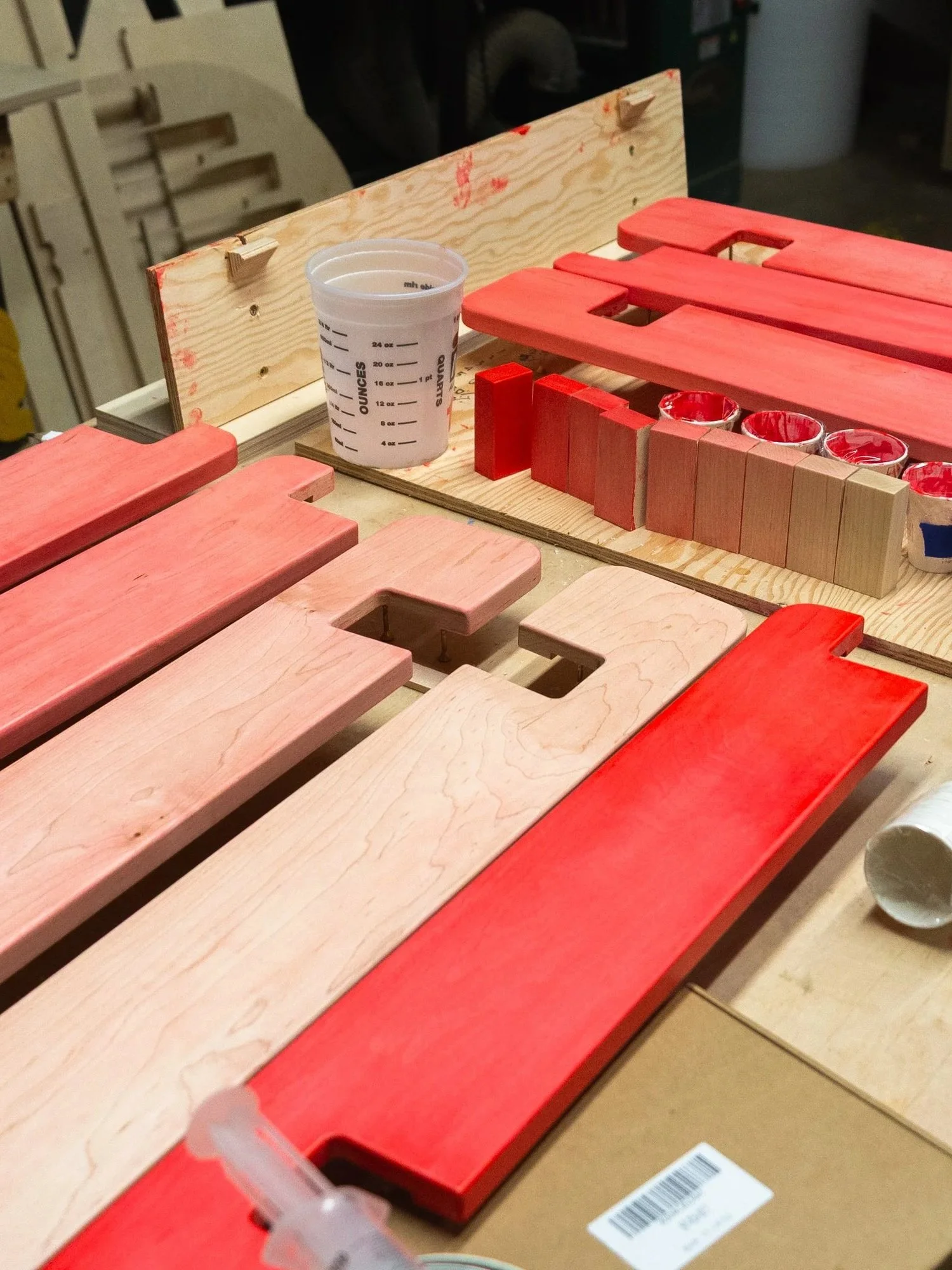 In process gradient stains for ladder treads by Donut Shop. Image © Donut Shop